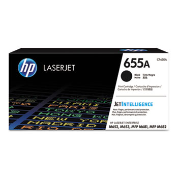 Main SpecificationsnProduct Description HP 655A – black – original – LaserJet – toner cartridge (CF450A)nProduct Type Toner cartridgenPrinting Technology LasernHP Sub-brand LaserJetnPrinting Color BlacknDuty Cycle Up to 12500 pages ISO/IEC 19798nCompatible with Color LaserJet Enterprise M652dn, M652n, M653dh, M653dn, M653x; LaserJet Enterprise MFP M681dh, MFP M681f; LaserJet Enterprise Flow MFP M681f, MFP M681z, MFP M682z